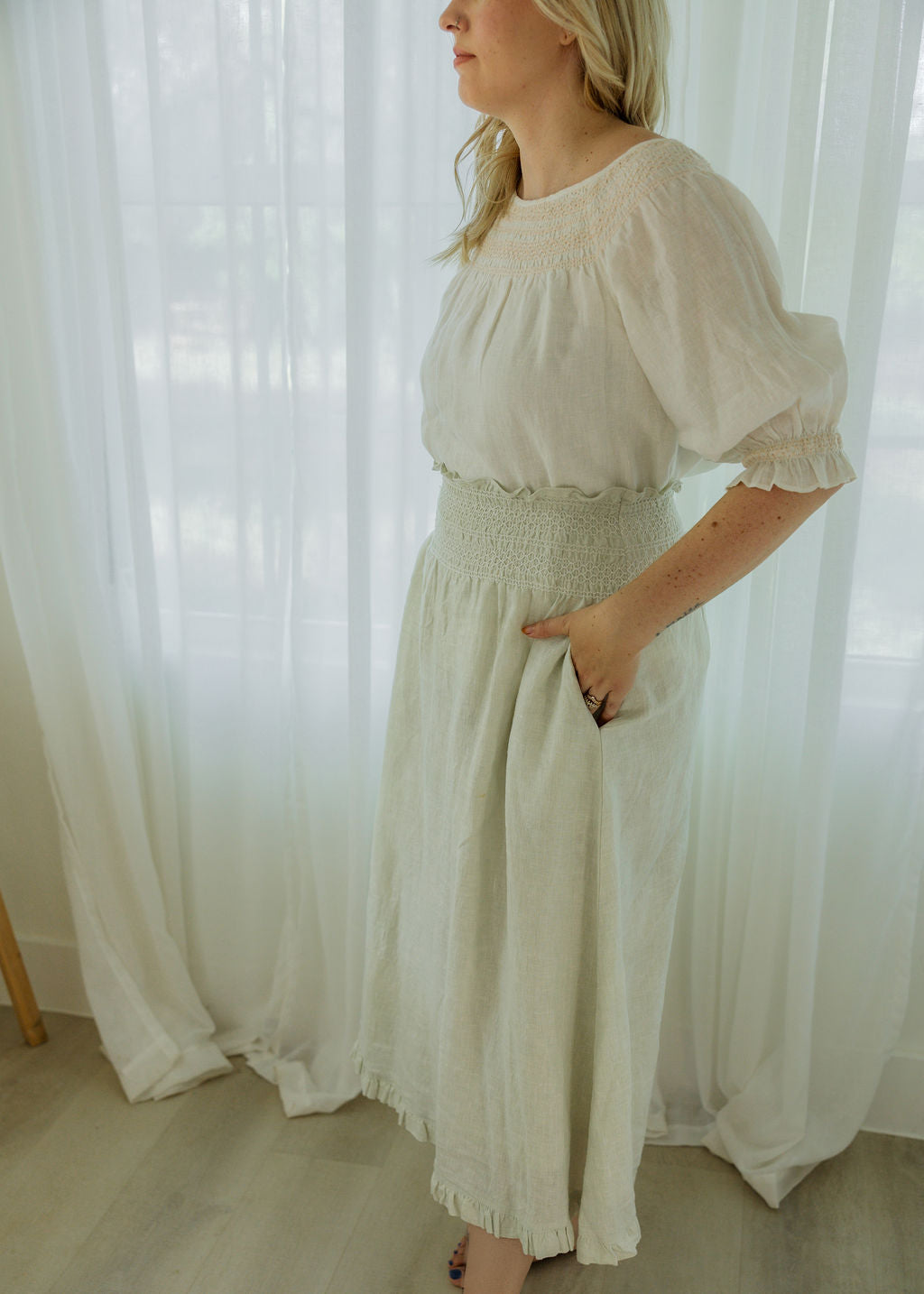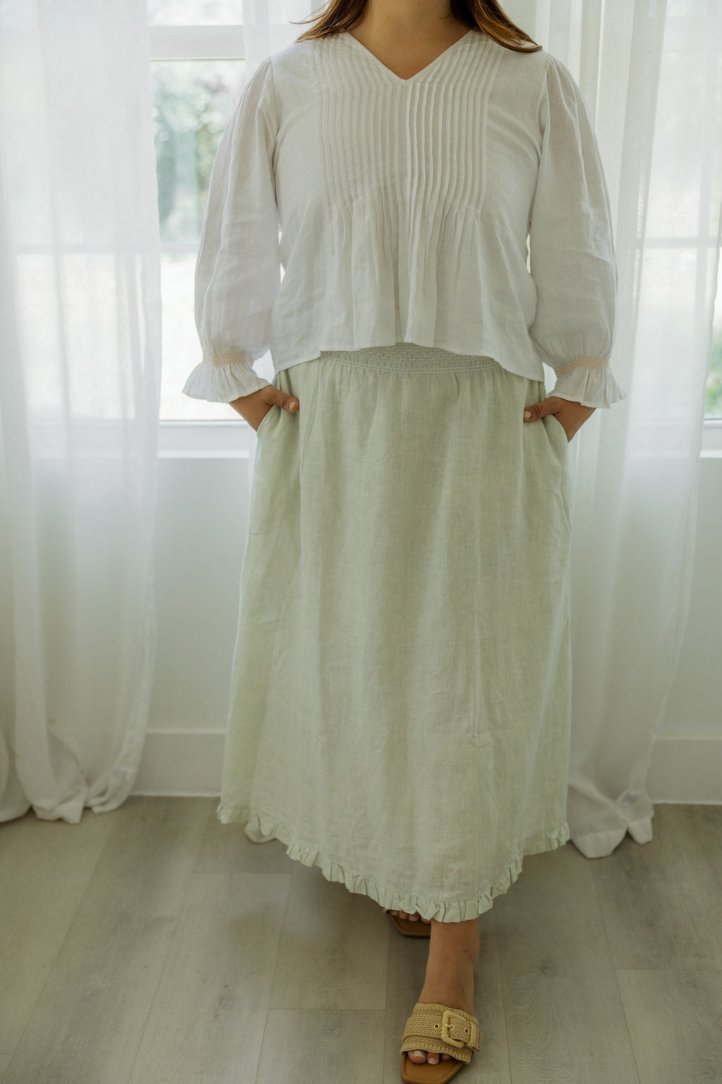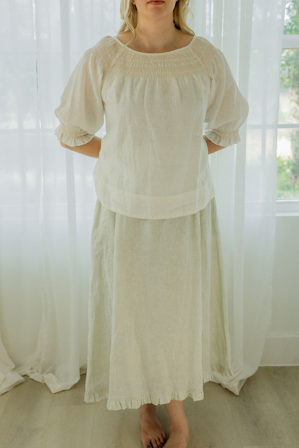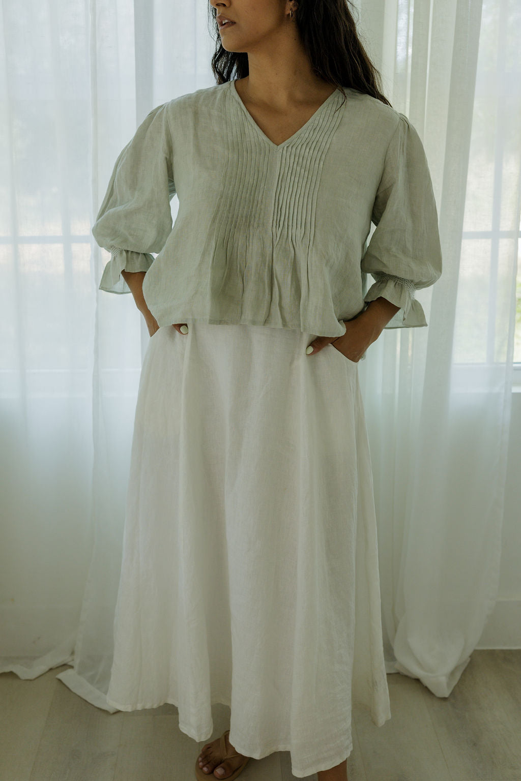 Designed in Austin and brought to life by artisans in Jaipur, every piece is made to move with you, soften over time, and feel like home from the very first wear.
